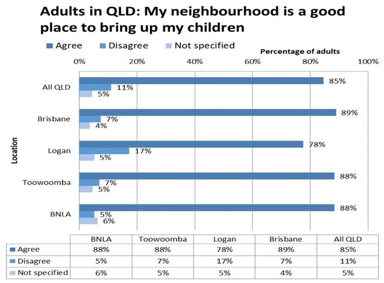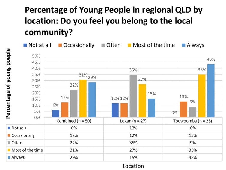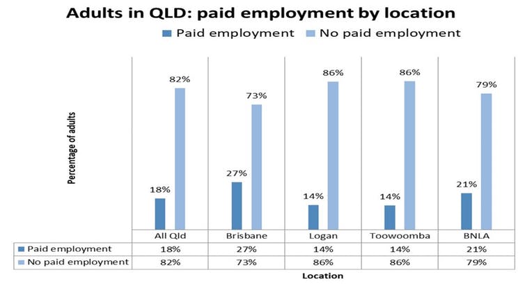 This is of course a national problem, as the BNLA survey shows. But in our research, we found those in regional Toowoomba fared worse than those in Brisbane. Most of the Toowoomba residents expressed a desire to stay in the community, though, and would happily do so if they could find a job.